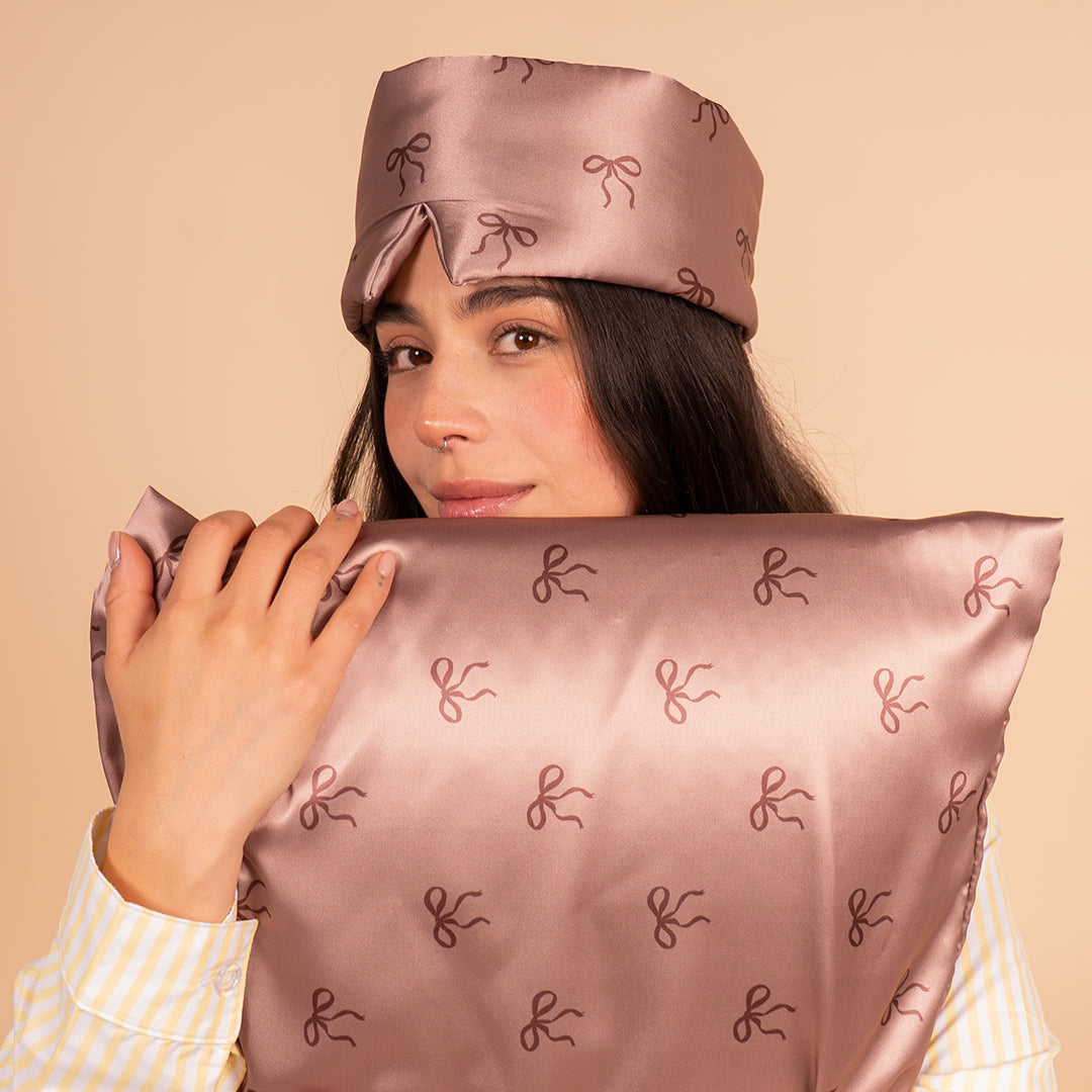 Previene las arrugas y las alergias provocadas por el roce con la almohada de algodón, tambien el satin no absorve tus productos de skincare que utilzas antes de dormir.